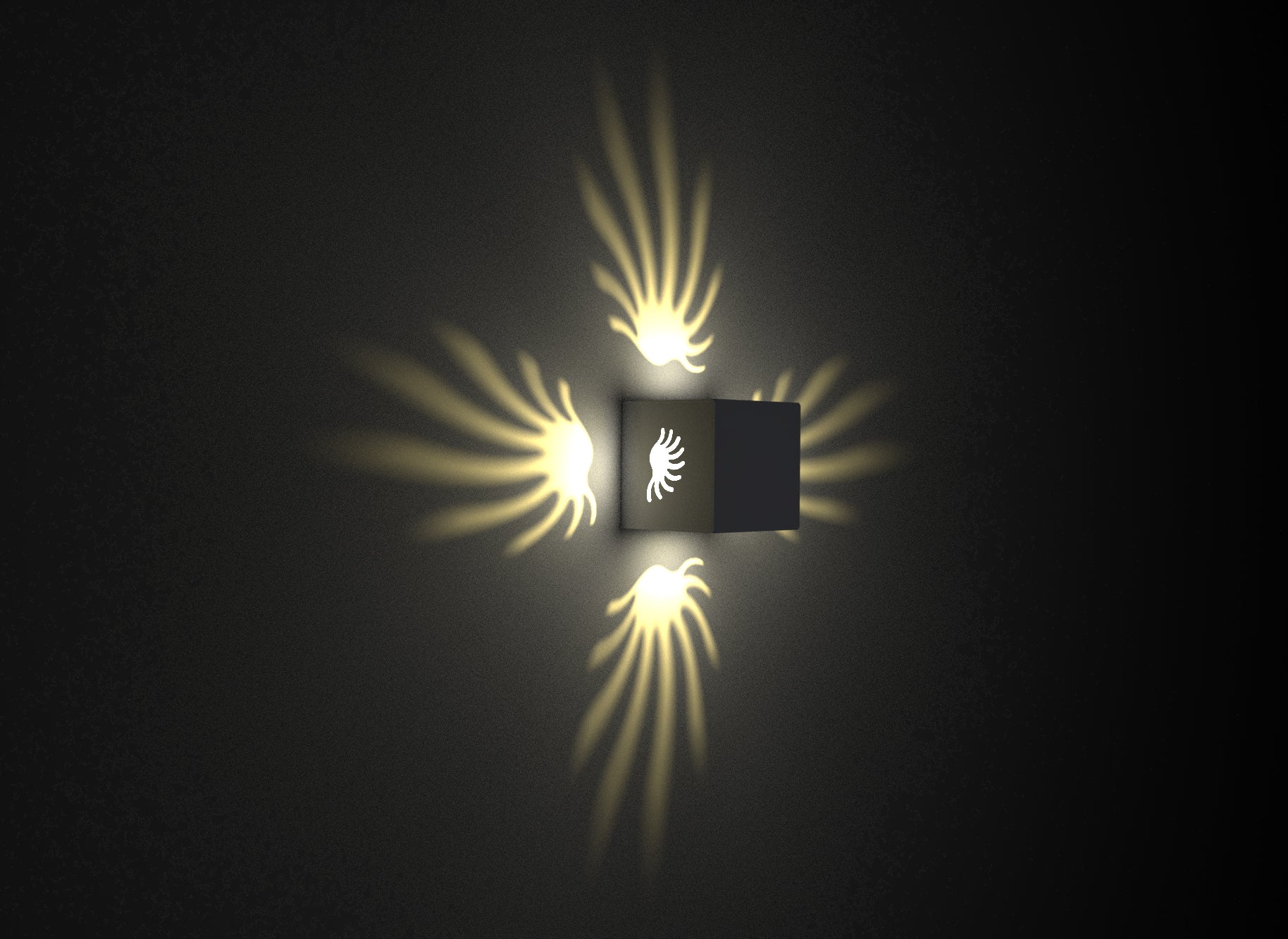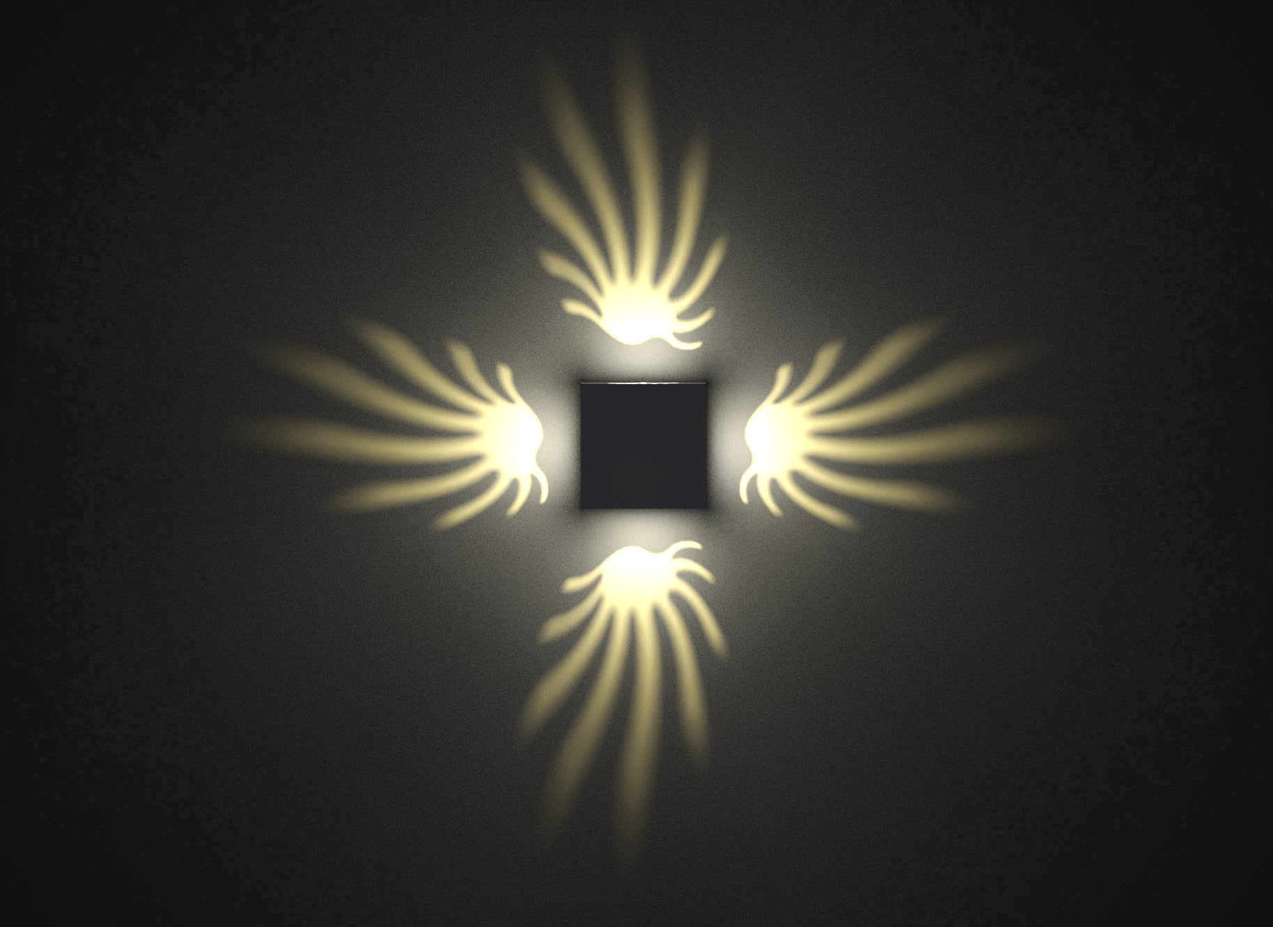 The CH.IL is a striking indoor wall luminaire defined by its unique and captivating design. Its central square form is accentuated by four radiating arms that project a mesmerizing, symmetrical pattern of light. This interplay of light and shadow creates a dramatic and eye-catching effect, transforming any surface into a visual focal point.